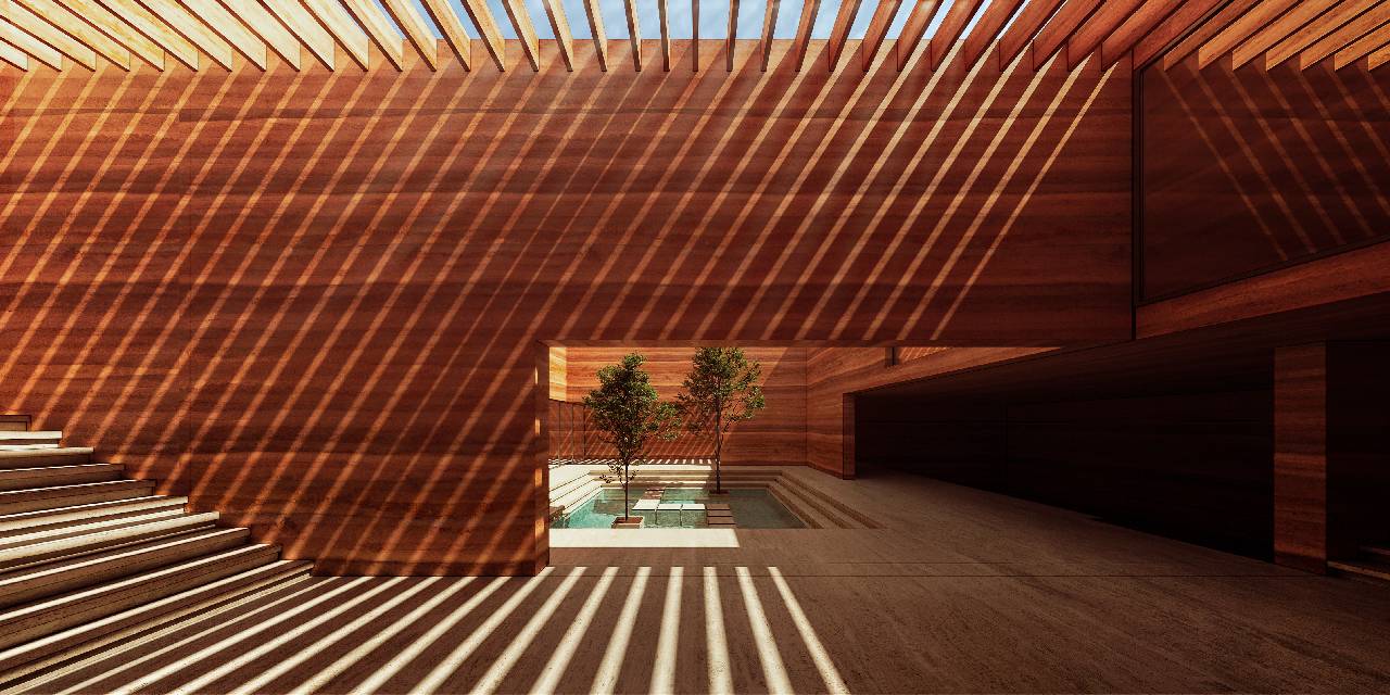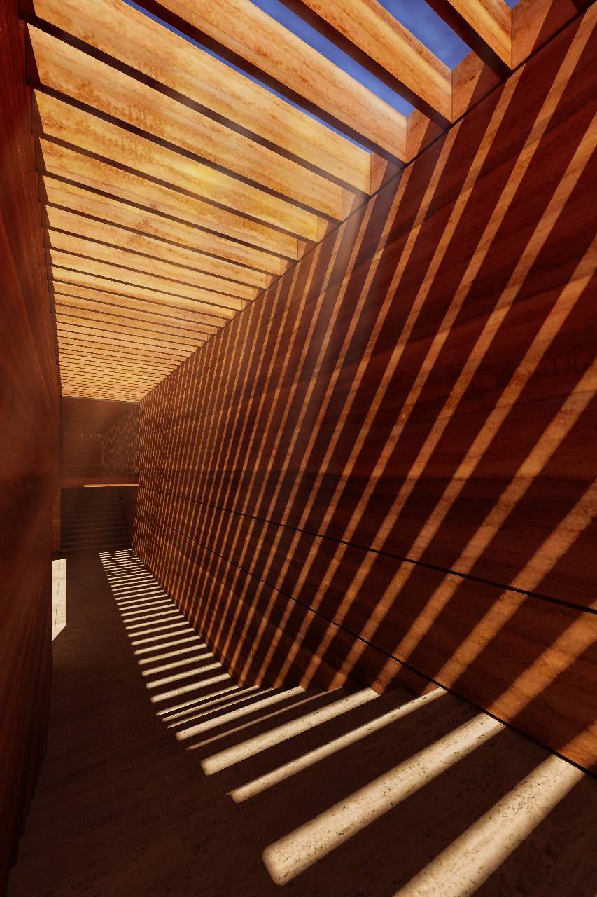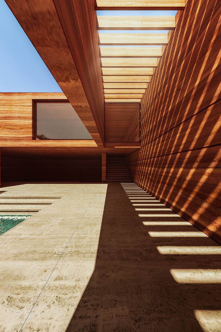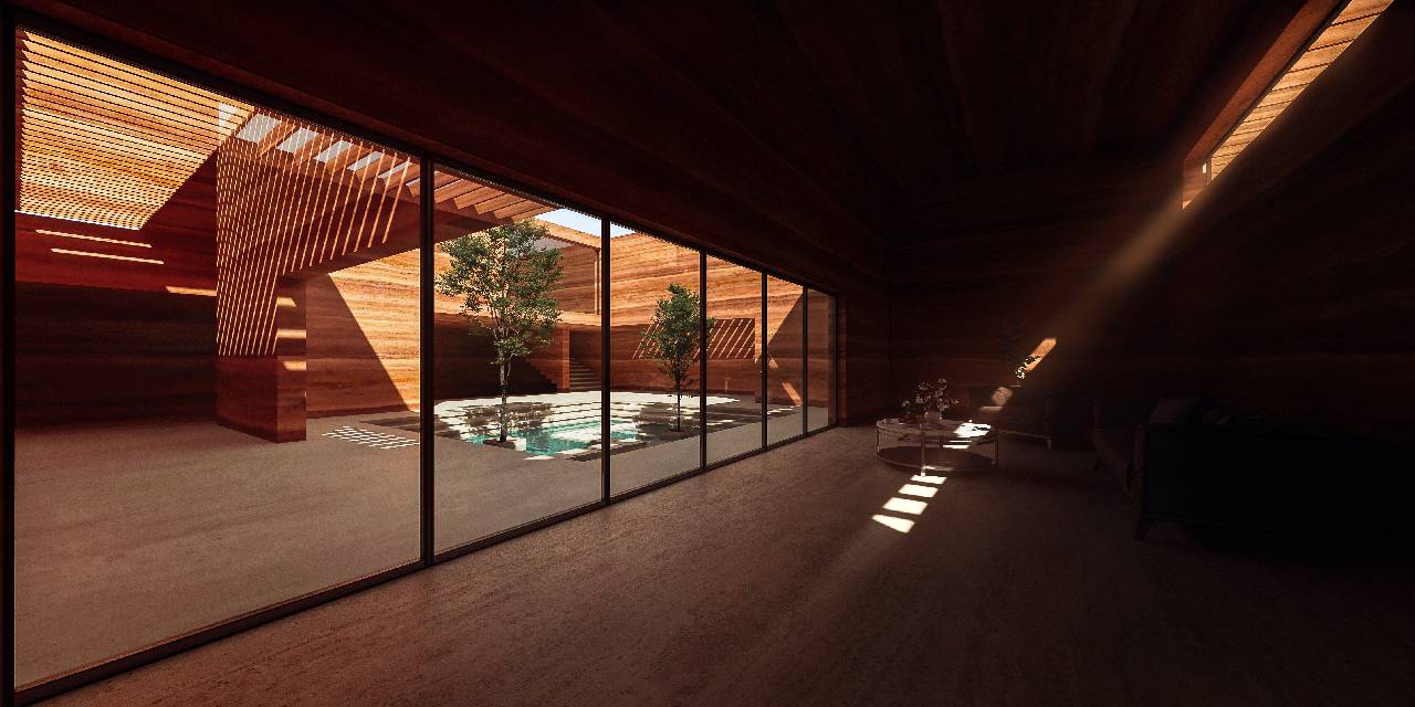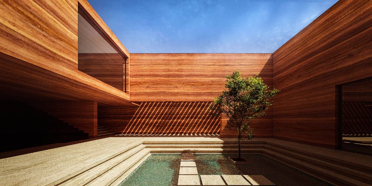 این پروژه در قسمت مرکزی ایران در شهرکرمان ، در اقلیم گرم و خشک واقع شده است. در این طراحی از اصول معماری همساز با اقلیم استفاده شده است. استراتژی اصلی طراحی استفاده از مصالح بوم آورد از جمله خاک رس و سنگ طبیعی است. برای سازگاری با محیط زیست از خاک برداشت شده از زمین برای گود برداری،در ساخت و ساز، استفاده مجدد شده است. بنابراین، معماری از مکان پدید آمده است. حجم های یکپارچه خانه عمدتا درونگرا ، شفاف وباز رو به حیاط است و از دو قسمت تشکیل شده است ، یکی برای زمستان و دیگری برای تابستان. درب به محوطه حیاط باز می شود ، در یک طرف حجم آن شامل آشپزخانه و اتاق های خواب در بالا است. از دیگر فضاهای طبقه همکف می توان به اتاق های نشیمن و غذاخوری اشاره کرد که به حیاط مناظر باز می شود.