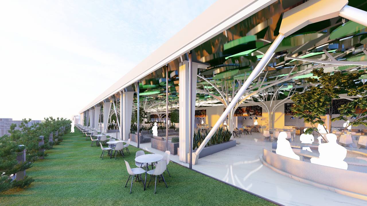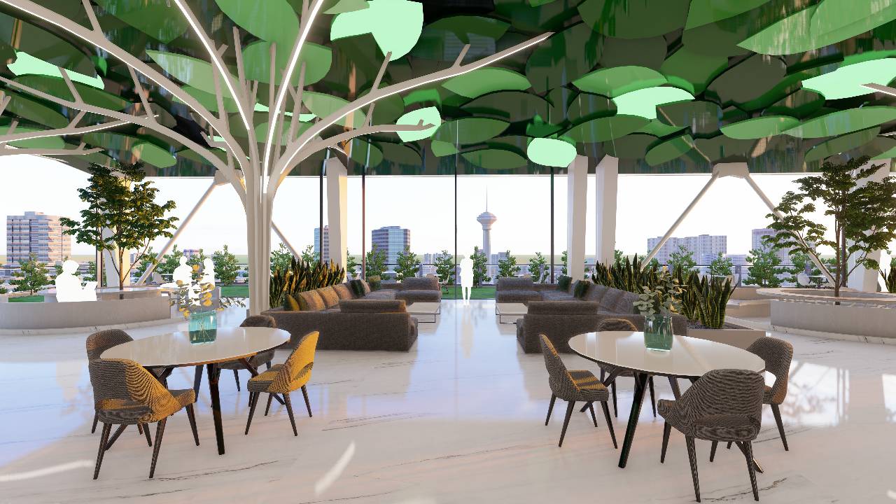 ” فوت کورت دیدار” به عنوان مکانی برای تعاملات اجتماعی و فرهنگی شکل گرفت. استراتژی طراحی، تلفیق فرم و فضا، حل مسیرهای عملکردی و پرداختن خلق فضایی چندمنظوره و منعطف است. در طراحی فوت کورت دیدار سعی شده است علاوه بر تهیه غذای سریع، مکانی آرامش بخش برای تامین آسایش فیزیکی و بصری کاربران مجموعه مهیا گردد. در واقع هدف طرح خلق فضایی برای القای حس آرامش و تعلق به فضاست که با استفاده از عناصر بصریتداعی کننده طبیعت و فضای سبز میسر گردیده است.
